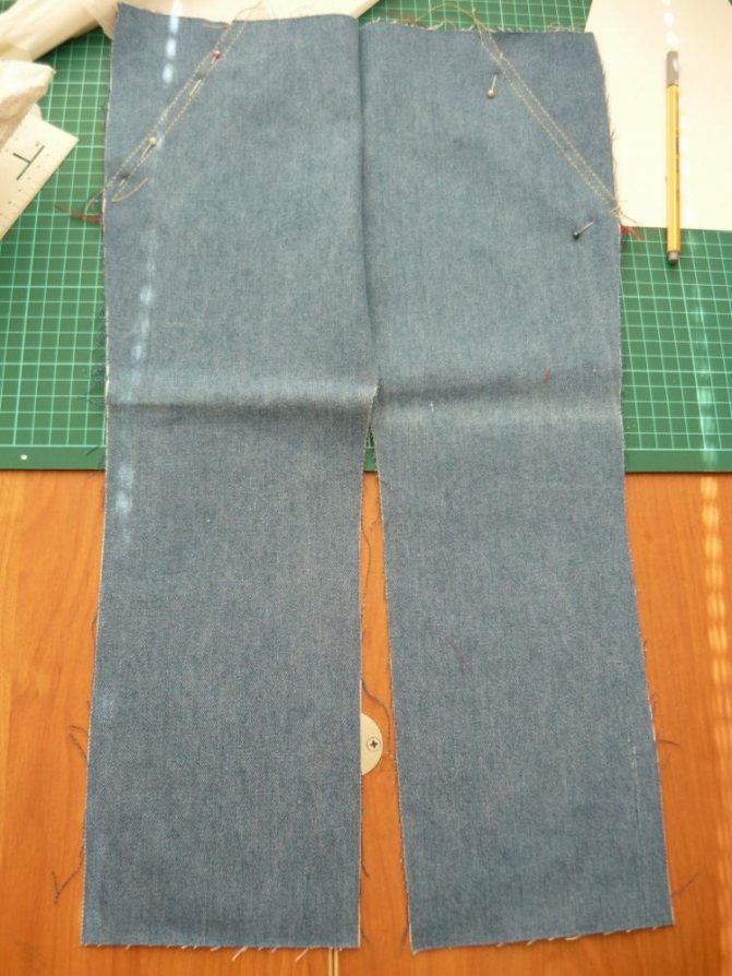 - Поделите прямоугольник брюк мысленно пополам и сложите по сгибу.