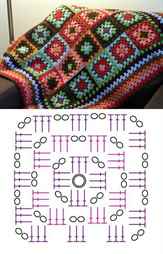 | Средний | Ссылка на схему афганского квадрата с пико | Вязание столбиками без накида, столбиками с накидом, пико. Создание узора с помощью чередования столбиков. |