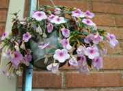 Лавендер фэнси. У него цветы по размеру средние. Соцветия лавандового оттенка, на которых кремовые пятна и такие же полоски. Стебель имеет бордовый оттенок с зелеными листьями. Сорт относят к ампельным растениям.