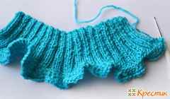Необходимо набрать число петелек, которое равняется обхвату шеи ребенка. Около семидесяти петелек.