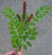 Голая аморфа. Обычно вырастает до двух метров и при этом смотрится очень изящно. Ее крона почти в два раза меньше ее высоты. Листья шелковистые, а крона воздушная.