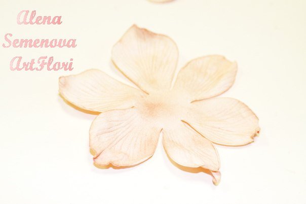 Следующим шагом необходимо, начав с серединки цветка, с помощью ножниц сделать незначительные надрезы V-образного вида по всей территории. Дать глине высохнуть.