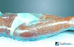 Перед процедурой надо подготовить тело к нанесению скраба, для этого надо принять душ и сделать массаж для разогрева кожи. Скраб нужно использовать для обертывания, поэтому нанести его надо круговыми движениями, хорошо массируя и затрагивая все участки кожи, не только те, где находится целлюлит. После этого с помощью пищевой пленки надо обмотать ноги и оставить смесь на 40 минут.