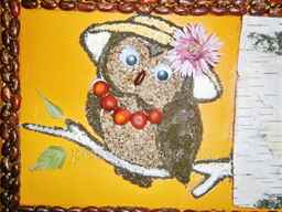 Как вариант, можно предложить еще выкладывать крупой не всю картинку, а только часть ее, а некоторые элементы просто раскрасить или выложить цветной/бархатной/гофрированной/фольгированной бумагой. Это будет выглядеть очень оригинально и необычно.