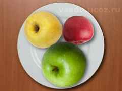 У яблока чередуем половинки: желтая – розовая, желтая – розовая.