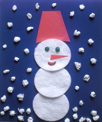 Аппликация снеговик с шаблонами из ваты
