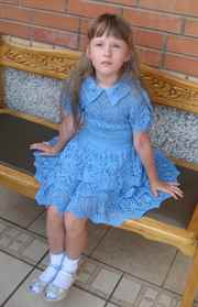 После того, как выбор модели будущего платья уже сделан, необходимо выбрать пряжу. Для ажурного легкого платья прекрасно подойдет тонкий акрил или хлопок. Если вы все-таки решили связать ажурное платье из шерсти, то обязательно удостоверьтесь, что у вашего чада нет на нее аллергии. Для совсем маленьких есть детская гипоаллергенная пряжа. Также для придания платьям элегантности и утонченности, можно использовать пряжу с вискозой. По количеству, в среднем, на ребенка двух лет уходит около 250 граммов нити. Но, конечно, количество нити будет сильно зависеть от выбранной вами модели и параметров самой девочки.
