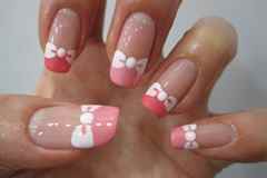 | 5. Рисование бантика (способ 2: дотсом) | Используя дотс, поставьте точки, формируя контуры петель бантика. Затем заполните пространство между точками лаком. Добавьте посередине небольшой овал или вертикальную линию. | Лак для ногтей цвета бантика, дотс |