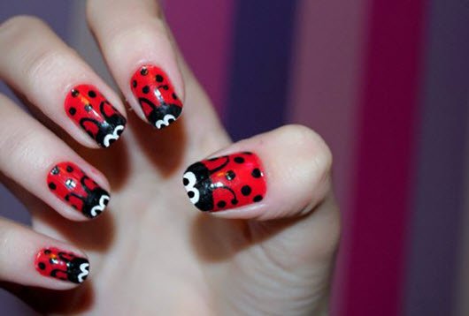 Маникюр гель лаками делается поэтапно, потому что каждый новый нарисованный элемент надо высушить в лампе, чтобы рисунок не растекался. Божьи коровки хорошо сочетаются как с яркими цветами, так и с нейтральными, могут даже дополнять французский маникюр. А одним из наиболее легких вариантов считается обычный красный лак, на котором рисуются несколько черных точек. Маникюр в стиле божьей коровки всегда будет ярким, он подойдет под любой наряд, а его выполнение не займет много времени.