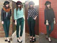 Брюки в горошек – модный и оригинальный предмет гардероба. В магазинах можно подобрать любой понравившийся цвет: чёрный, бежевый, синий и т. д. Смелым девушкам понравится комбинация брюк зеленого цвета с яркой рубашкой с рисунком. Важно, чтобы узоры смотрелись гармонично.