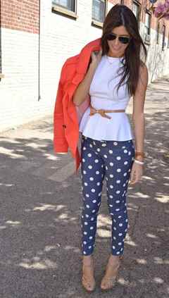 C чем носить брюки в горошек летом?