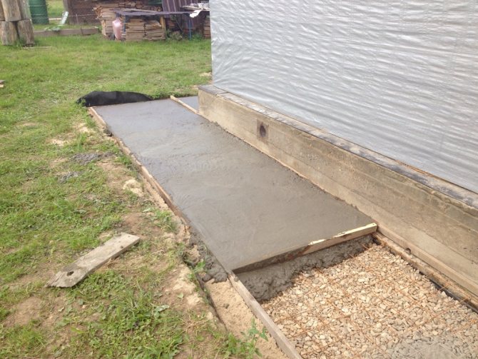 Отмостка должна быть выполнена по определенным правилам: иметь уклон 2-3° от дома, а минимальная ширина должна составлять 70 см. В противном случае, выполненная площадка вокруг дома будет пешеходной дорожкой и функции защиты дома от воды осуществлять не будет.