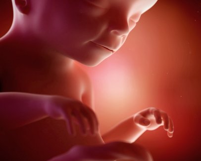 Плод на 19 неделе беременности. На этом сроке активно развиваются отделы мозга, связанные с органами чувств: зрением, осязанием, слухом, обонянием и вкусовыми рецепторами. На голове у малыша начинают расти первые волосики. Все его тельце покрыто первородной смазкой, которая защищает его тонкую и нежную кожу.