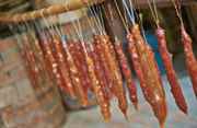 10. Убираем готовые и толстенькие колбаски сушиться на четырнадцать дней. Для этого подвешиваем их за свободный конец. В итоге сверху лакомство будет твердым, а внутри останется мягким. В таком виде чучхелу можно уже употреблять. Но чтобы она созрела до конца, нужно дать ей еще время.