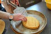 5. Смазываем формочку маслом. В ее серединку кладем шарик теста и прямо в формочке лепим лепешечку толщиной не больше одного сантиметра.