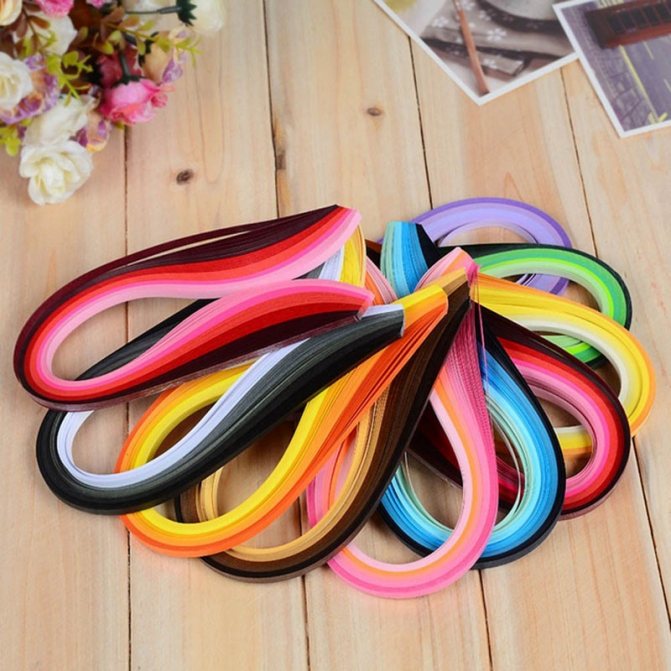 Помимо инструментов, для изготовления поделок из квиллинга для начинающих понадобятся полоски бумаги. Для бумагокручения можно использовать как специальные наборы, которые продаются в магазинах для творчества, так и полоски, заготовленные самостоятельно.