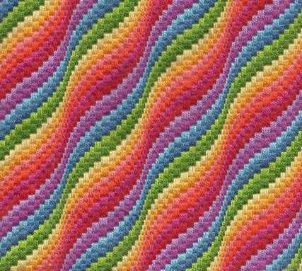 Начните вышивать первый ряд с середины канвы и двигайтесь по направлению к краю. Затем закончите ряд, двигаясь к другому краю канвы пока ваш узор не будет завершен. Следующий ряд делайте другим цветом и в уже направлении от края канвы до края. Все последующие ряды вышивки делаются таким же образом с использованием других цветовых оттенков.
