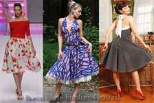В тренде снова ретро стиль, поэтому актуально будут смотреться расклешенные брюки, платья и юбки трапеции, платья в голливудском стиле и модели с пышными юбками длины миди. Женская фигура в таких платьях смотрится элегантно и изысканно. Комбинировать их лучше с аутентичными аксессуарами и обувью на каблуке.