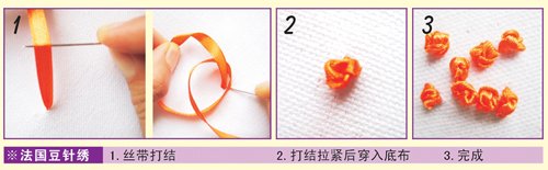 – При вышивании маленьких узелков лучше брать нитки типа мулине, они создадут выпуклость и нужный эффект.