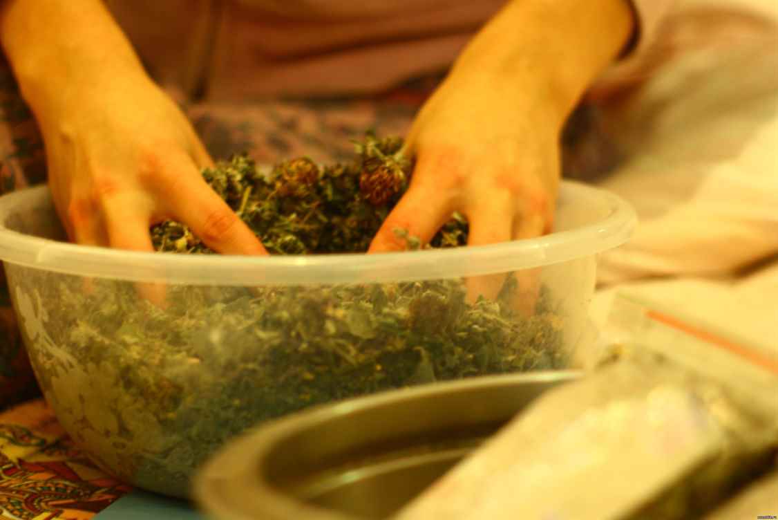 - Возьмите по одной столовой ложке каждой из трав и смешайте их в одной емкости.