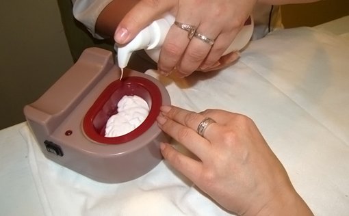 Выполнение горячего маникюра начинают с нагревания специального лечебного вещества на водяной бане. Главное – не переборщить с температурой, она должна быть комфортной для ваших рук.