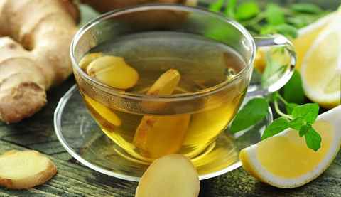 Классический рецепт включает в себя 3 столовых ложки свежего корня имбиря на литр воды, несколько листочков мяты и 4 столовых ложки лимонного сока. Далее можно добавить по вкусу сахар или мед. Смесь необходимо довести до кипения и варить около 10-15 минут.