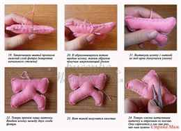- Сшивают одинаковые детали между собой, отставляя небольшие отверстия для заполнения каждой буквы наполнителем.