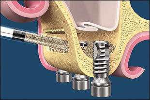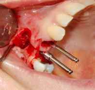 - В десне и кости проделывается прорезь таким образом, чтобы кость немного отслоилась.