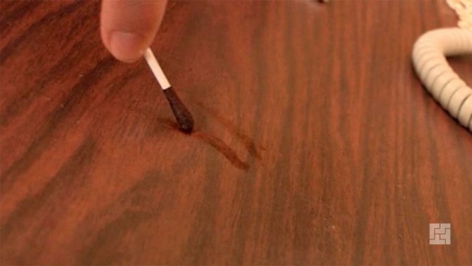 Так как крем для обуви с легкостью можно купить и в жидком и в кремообразнов виде им очень удобно заполнять любые трещины на мебели, и цветовой гаммой проблем возникнуть не должно. Кремообразную краску для обуви можно наносить на царапины ватными палочками.