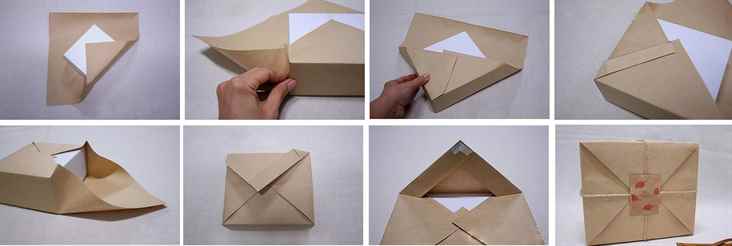 - Далее можно воспользоваться одной из двух вариаций: или подвернуть боковые участки, или нижнюю область. От данного действия будет зависеть внешний вид упаковки в итоге. При использовании двустороннего скотча затруднений не возникнет, потому как его не будет видно.