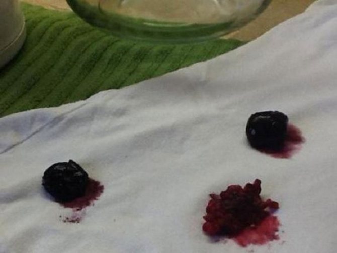 При удалении пятен от перечисленных ягод упор нужно делать на эффект отбеливания, поэтому наносятся используемые средства обычно локально на удаляемые пятна.