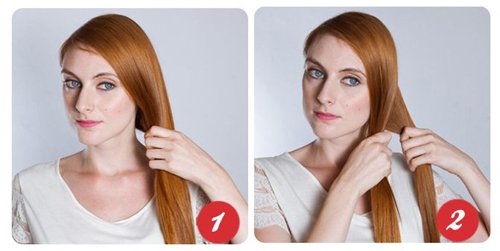 - Пальцами слегка расчешите пряди и разделите их по бокам на две большие части.
