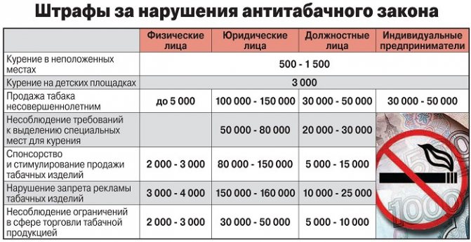 Штраф за курение в общественном месте