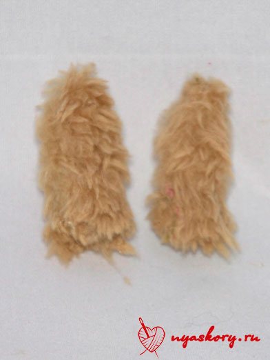 Сначала прошейте ушки, сложив их лицевыми сторонами внутрь. Выверните их.