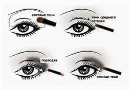 - Если девушка является обладательницей больших глаз, то тени можно наносить и на нижнее веко, чтобы глаза казались меньше и не выделялись на фоне лица.