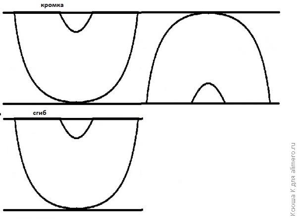 1) Сделайте себе лекала, обведя которые сможете точно раскроить материал. Нарисуйте половину круга, где маленький и большой радиус можно вычислить: