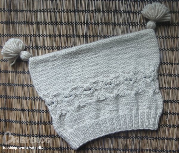 Вязание краев будет осуществляться в технике «пышная резинка». Поначалу Вам может показаться, что изделие будет мало, однако это вовсе не так – шапочка подойдет даже двухлетнему ребенку!