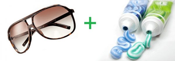 Используя гелевую, неабразивную, неотбеливающую зубную пасту можно быстро замаскировать мелкие царапины на стеклах очков.