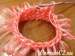 | 3. 2-й ряд (вытянутые петли) | В этом ряду будем вязать вытянутые петли. Введите крючок в первую петлю предыдущего ряда, захватите рабочую нить и протяните ее через петлю на крючке. Повторите это действие, не провязывая петли вместе, а оставляя их на крючке. Когда на крючке будет нужное количество петель (например, 5-7), провяжите их все вместе. Повторите для каждой петли предыдущего ряда. | Количество петель на крючке определяет длину вытянутой петли и пышность мочалки. Экспериментируйте! |