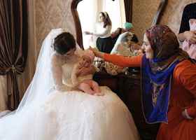 С утра в доме невесты собираются её родственники и подруги, которые помогают ей в подготовке. В это время жених с друзьями также готовится к свадьбе, но его подготовка проходит в другом месте. Важным моментом является то, что жених не имеет права видеть невесту до самой церемонии. Это создает атмосферу ожидания и волнения.