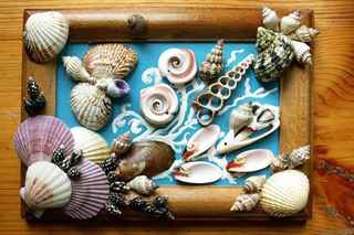 Сначала надо разобрать раковины по размеру и виду. Затем промываем и хорошо высушиваем. Для насыщенности цвета прокрашиваем морилкой или крепким раствором марганцовки, но тогда цвет может измениться. Более простой вариант – покрасить ракушки акриловыми красками в необходимый цвет. Цветовая гамма подбирается в зависимости от тематики изображения. Перед поклейкой ракушки краски должны полностью высохнуть. Можно еще покрасить раковины лаком для ногтей, очень эффектно выглядят перламутровые лаки.