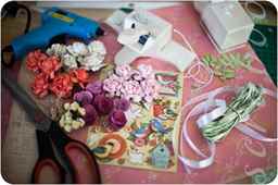 17. Раскладываем и приклеиваем цветы, другие элементы.