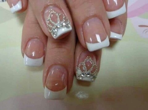 Есть достаточно смелые девушки, которые на ногтях делают корону из страз. Такой вариант смотрится очень красиво и празднично, но стразы не будут долго держаться на ногтях, скорее всего, они быстро отпадут. Также вариант нанесения короны в виде страз не под каждый стиль подойдет, так как данный вариант маникюра слишком праздничный и блестящий, поэтому корону можно сделать на день рождения, свадьбу или праздник, на котором девушка будет в светлом наряде.