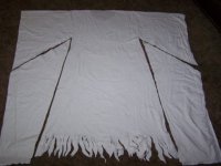 Костюм ангела без посева – белый материал. Я использовала простыню, чтобы он не распускался. Измерьте от плеча до щиколотки и от запястья до запястья. Сложите материал пополам и вырежьте небольшой полукруг в самой середине для головы. Сделайте два разреза на уровне талии, которые доходят до спины.
