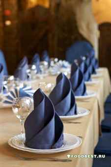 - Если планируется создать во главе стола сложную, с множеством уровней, композицию, тогда желательно ее сформировать до того, как приступать к сервировке.