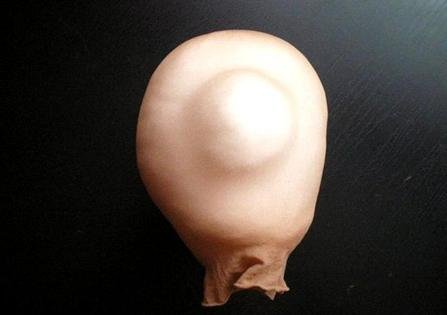 3 шаг: расправляем синтепон внутри капронового мешочка так, чтобы по бокам от носика появились пухлые щеки. А также делаем небольшой жгут из синтепона и вставляем под носиком – основа для губок: