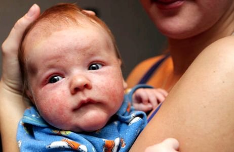 - На грудное молоко – явление нередкое. Поскольку каждая мамочка хочет обеспечить своего малыша крепкой иммунной системой, она старается кормить ребенка грудным молоком как можно дольше. Но иногда у него появляются аллергические реакции, которые обусловлены покраснениями и высыпаниями на теле. Также отмечают вздутие животика, газообразование и колики, иногда бывают запоры. Все это происходит по причине проникновения через материнское молоко в организм ребенка вредных веществ, которые пагубно отражаются на состоянии грудничка. Еще одной причиной является несоблюдение рекомендуемой диеты для кормящих мам.