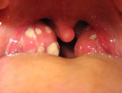 | Налет на миндалинах | Белый или желтый налет на миндалинах; | |