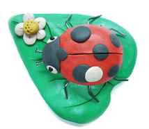 Можете вылепить листик из зеленого пластилина с прожилками, продавленными зубочисткой, и посадите на него нашу Тучку.
