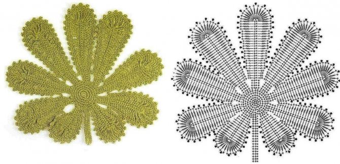 По такой же схеме провязываем вторую половинку листика ромашки.